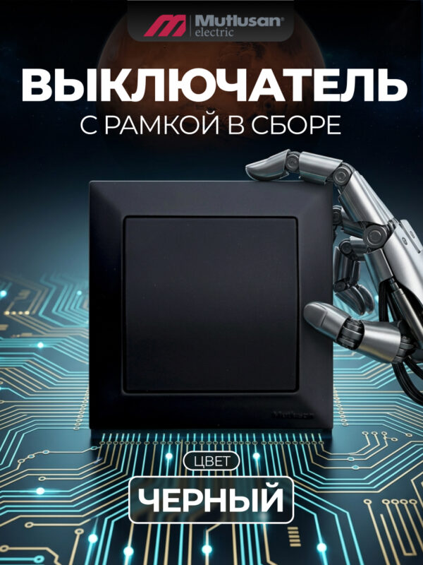 Выключатель с рамкой одноклавишный, черный, серия Candela