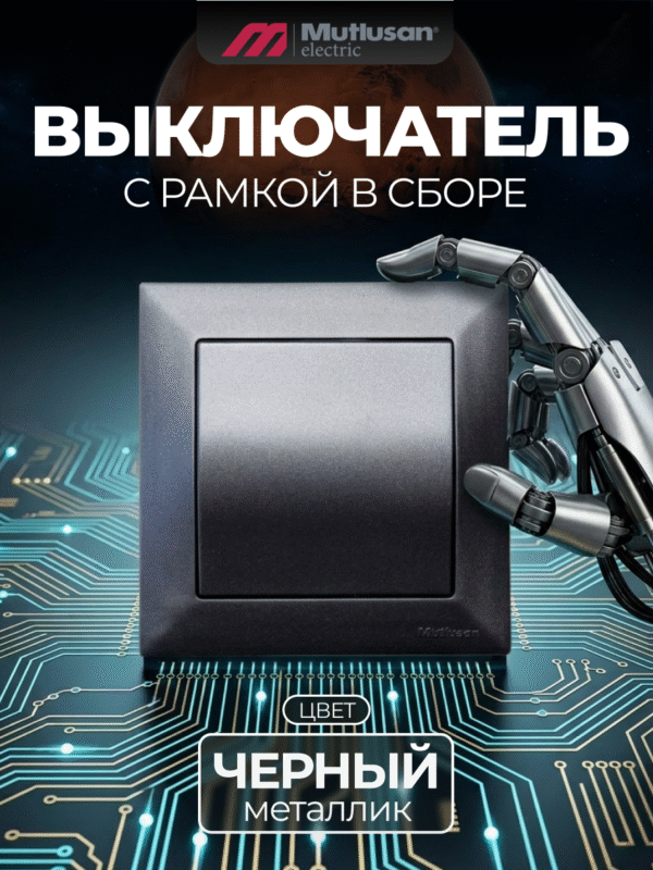 Выключатель с рамкой одноклавишный, черный металлик, серия Candela