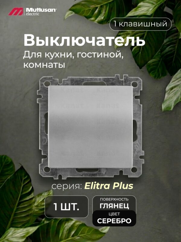 Выключатель без рамки одноклавишный, серия Elitra Plus