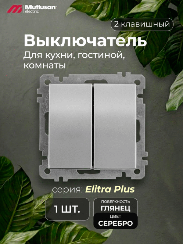 Выключатель без рамки двухклавишный, серия Elitra Plus