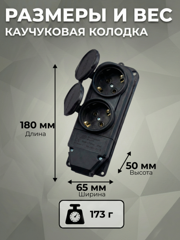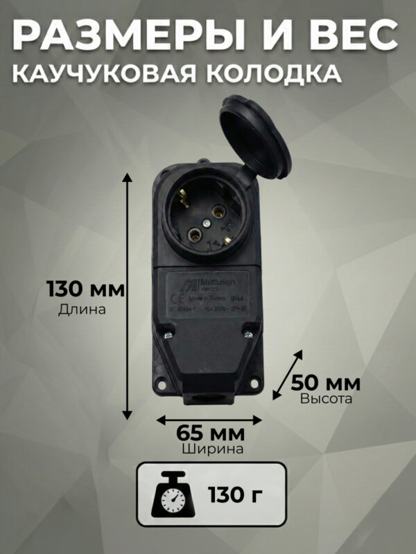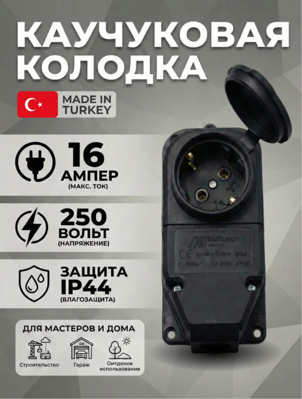 Вилка разборная, каучук, 16 А, 250 В, IP44, с з/к, черная.