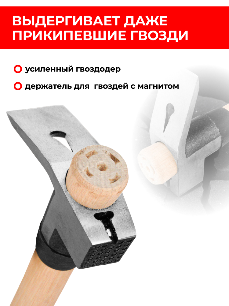 • Встроенный гвоздодер для легкого извлечения гвоздей