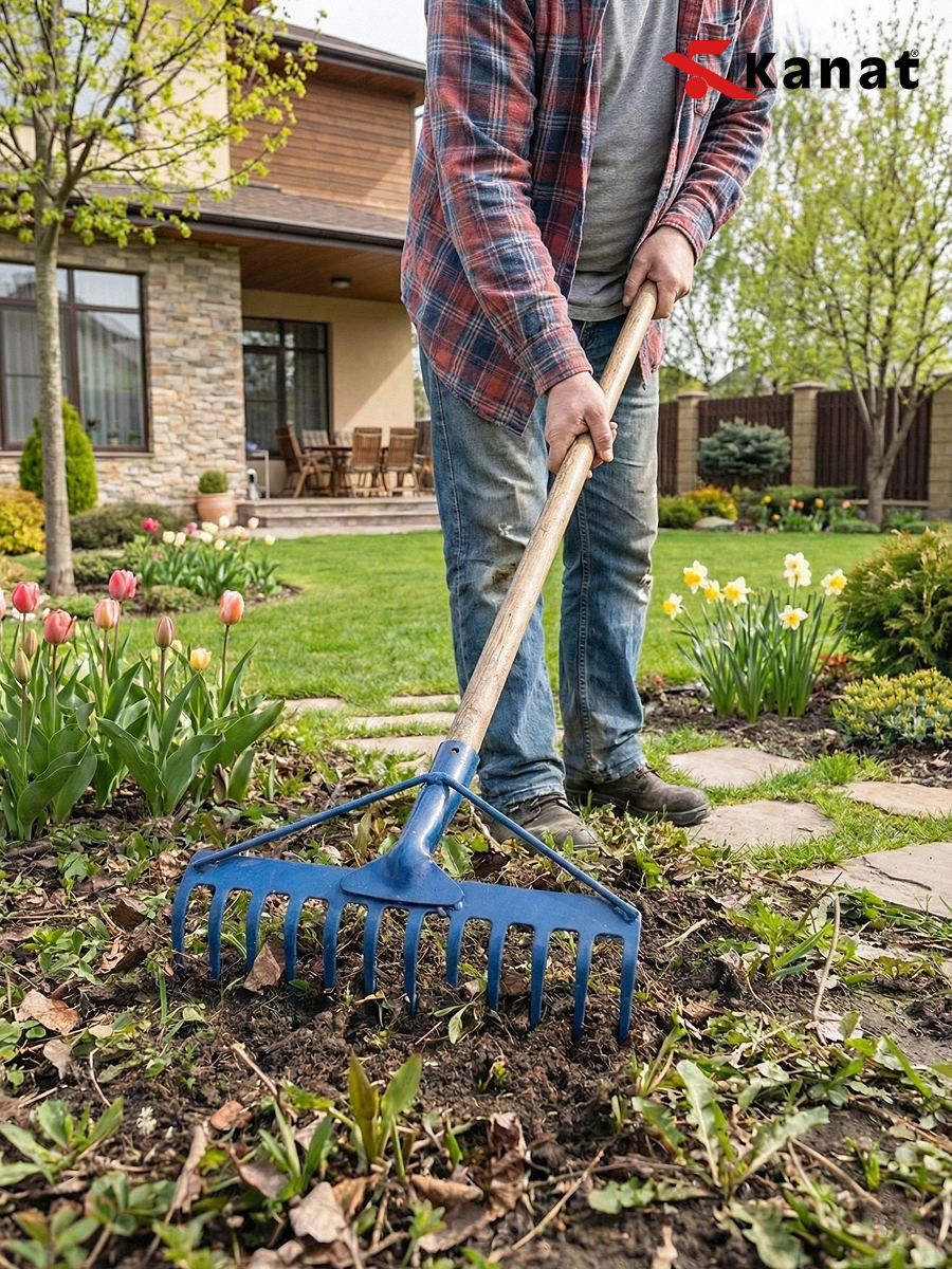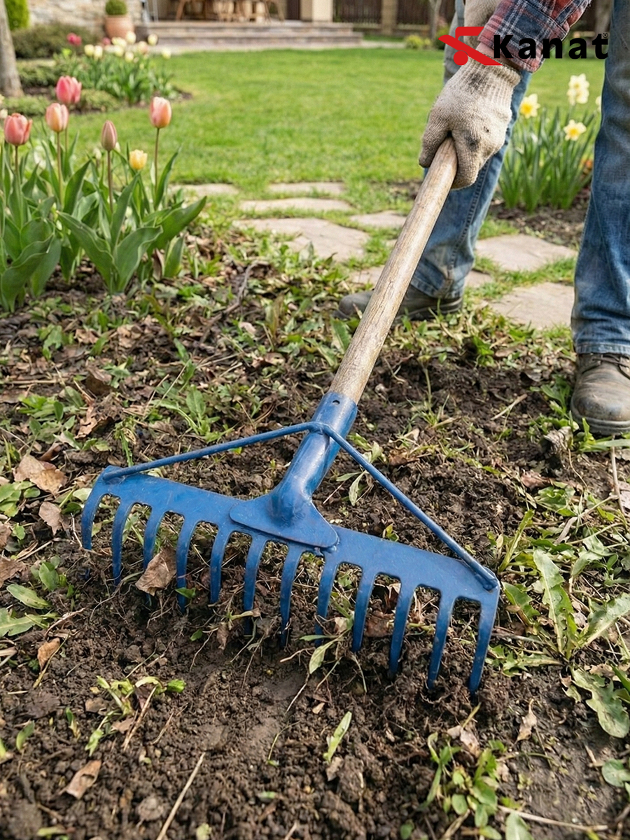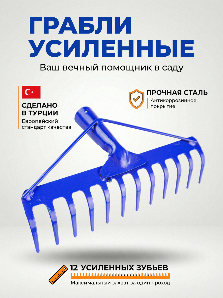Грабли садовые Kanat TT-851 с 12 зубьями — это идеальный баланс манёвренности и эффективности для ухода за небольшими участками и клумбами. Отверстие под черенок 3.5 см. Их компактная рабочая часть шириной 31 см с двенадцатью металлическими зубьями отлично справляется с аккуратной обработкой почвы и уборкой мусора в труднодоступных местах. Лёгкий вес в 550 г и классический синий цвет делают инструмент практичным и узнаваемым, а турецкое производство гарантирует качество исполнения. Эти грабли отличаются особой универсальностью и удобством. Двенадцать заострённых зубьев обеспечивают тщательное рыхление и выравнивание грунта, а оптимальная ширина позволяет работать среди кустов или на грядках, где более крупному инструменту не развернуться. Прочная металлическая конструкция прослужит долгие годы, а возможность подобрать черенок индивидуальной длины (диаметр 28-30 мм) делает работу максимально комфортной для любого пользователя. Этот инструмент создан для повседневной заботы о саде, огороде и цветнике. Он станет лучшим помощником для дачников и владельцев частных домов, когда нужно аккуратно обработать почву вокруг растений, убрать листья с газона, подготовить небольшую грядку для посева или очистить территорию от мелкого мусора после обрезки деревьев. Их выбирают те, кто ценит контроль, аккуратность и удобство в работе. Это выбор для садоводов, которым не нужна излишняя ширина, но важна точность и возможность работать на любом, даже самом компактном участке земли. С этими граблями вы легко приведёте в порядок каждый уголок вашего сада.