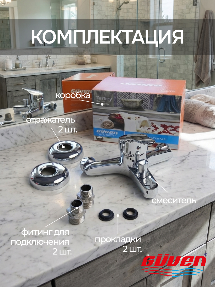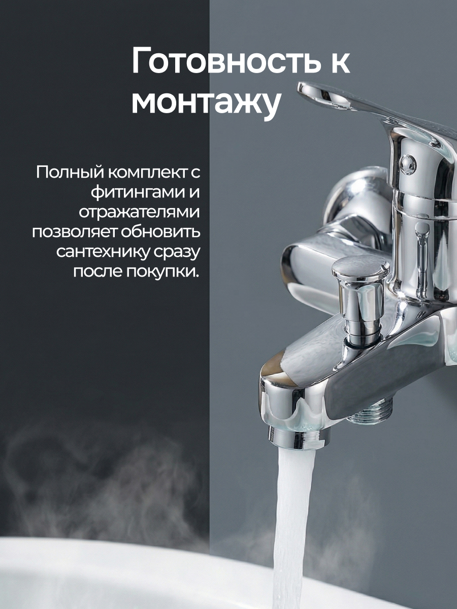 Ваша ванная комната преобразится за считанные минуты! В коробке надежно упакованы: усиленный фитинг (2 шт.), хромированный декоративный отражатель (2 шт.) и стандартное резьбовое подключение. Этот компактный и надежный инструмент обеспечит вам комфортные водные процедуры на долгие годы.