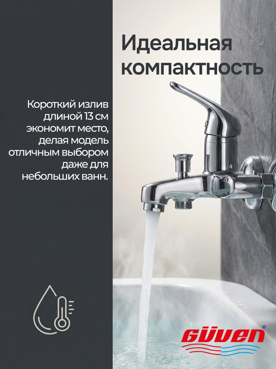 Умная экономия пространства: Практичный короткий формат (длина всего 13 см) позволяет комфортно использовать этот кран даже в малогабаритных санузлах, монтируя его над узкой чашей или как стильное решение на умывальник.