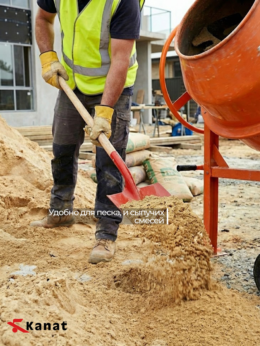 Лопата Kanat станет незаменимым помощником в саду, на стройке или при выполнении ремонтных работ. Благодаря прочной конструкции и универсальному дизайну она прослужит вам долгие годы.